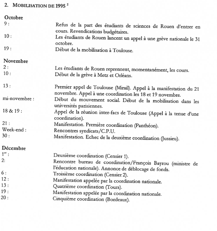 Marie-Pierre Vieu, « Retour sur la naissance du mouvement étudiant de novembre-décembre 1995 », Bulletin du collectif PHU, n°1, 2021.