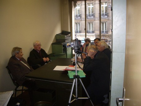 Janvier 2009. à l’AAUNEF. De gauche à droite : Pierre Rostini, Tom Madden, Donna Bergen, Alain Monchablon, Pierre-Yvesv Cossé (on ne le voit pas), Paul Bouchet, Jean-Paul Delbègue. Photo Robi Morder.